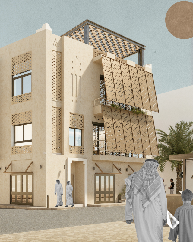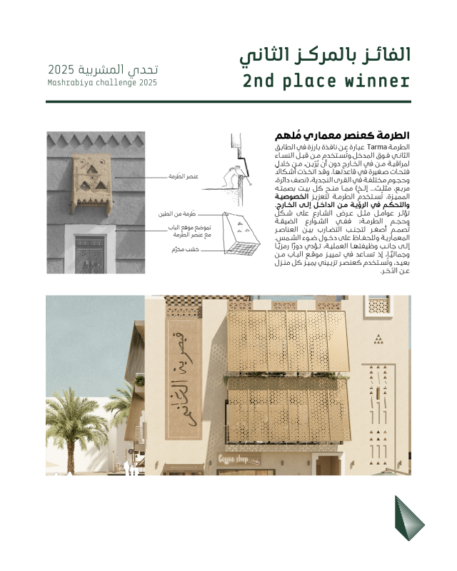 The mashrabiya is an element of traditional Arabic architecture used since the Middle Ages up to the mid-20th century. It is most commonly used on the street side of the building; however, it may also be used internally on the sahn (courtyard) side.